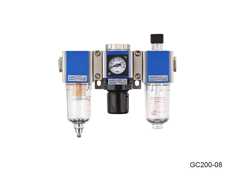 Durch die Verwendung eines Filterreglerschmieres hilft eine konstante Öl-zu-Luft-Dichte über einen weiten Bereich von Strömungen. Der Luftfilter, der Regler und der Schmiermittel arbeiten zusammen, um saubere, ölfreie Luft an pneumatische Geräte zu liefern.