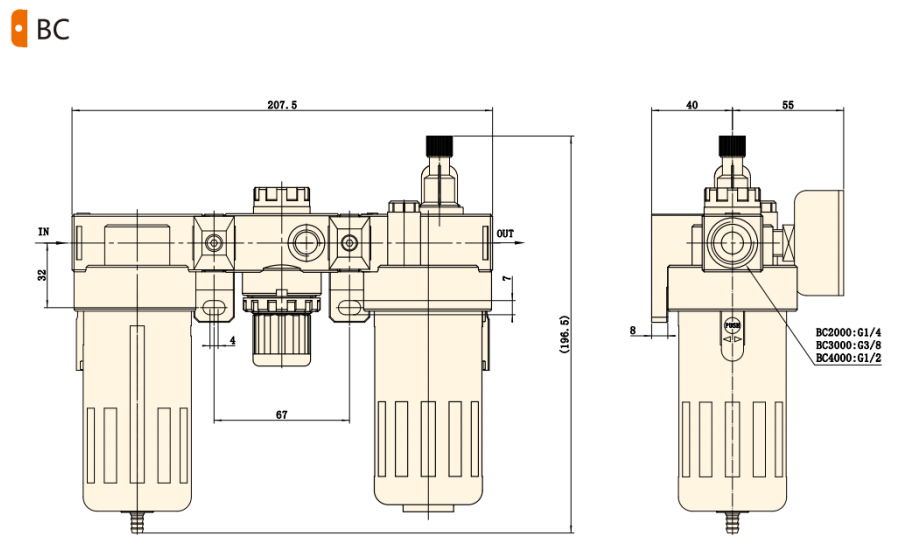 | Komponenten | Filterregler | AF1500 | AF2000 | BF2000 | BF3000 | BF4000 |