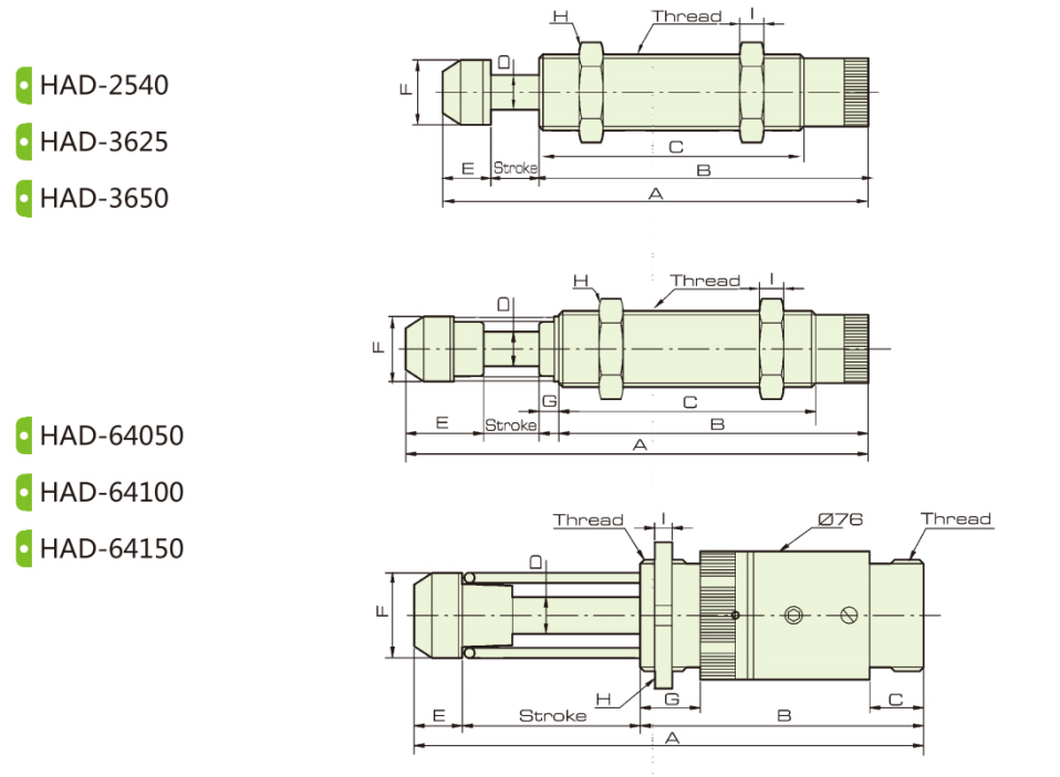 | HAD-64100 | UNF21/2-12 | 247.8 | 196 | 26 | 20 | 51.8 | 59 | 23 | 76.2 | 9.4 |