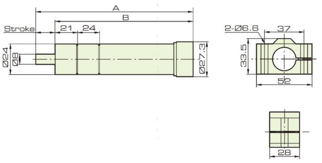 | Spezifikation/Symbol | A | B | Max.Stroke (MM) | Arbeitstemperatur (℃) | Max.charge (KGF) |