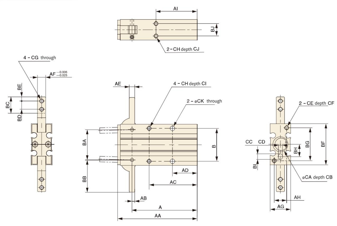 | Bohrungsgröße | C | CA | CB | CC | CD | CE | BF | CG | CH | CI | CJ | CK |