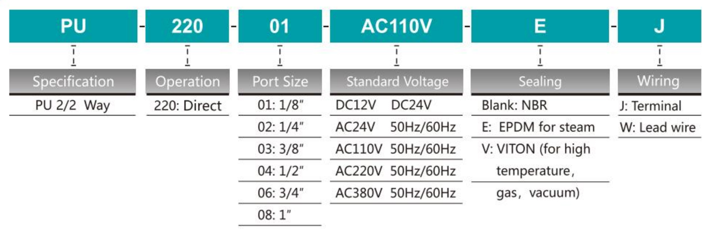 | Model | PU220-01 | PU220-02 | PU220-03 | PU220-04 | PU220-06 | PU220-08 |