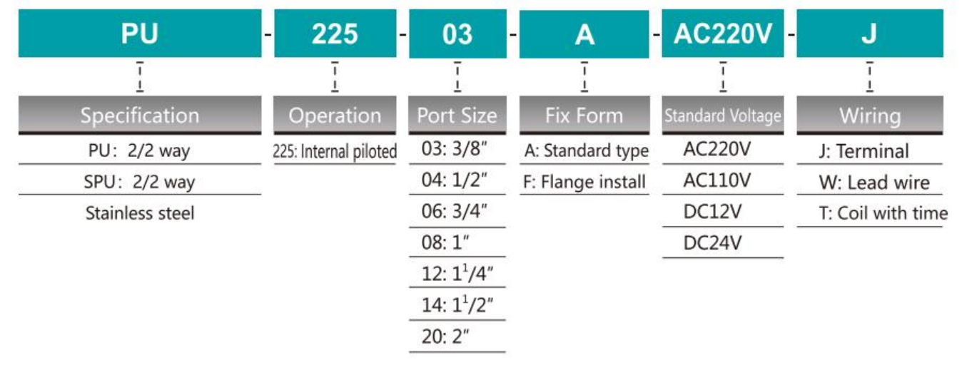 | Model | PU225-03A | PU225-04A | PU225-06A | PU225-08A | PU225-12a | PU225-14A | PU225-20A |