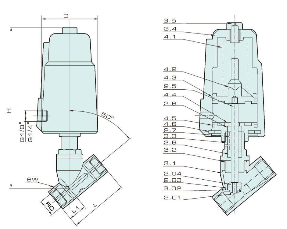 | 2.01 Bolzen | 3.1 Ventilkörper | 4.1 Feder |