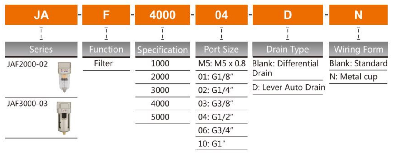 | Model | JAF1000-M5 | JAF2000-01 | JAF2000-02 | JAF3000-02 | JAF3000-03 | JAF4000-03 | JAF4000-04 | JAF4000-06 | JAF5000-06 | JAF5000-10 |