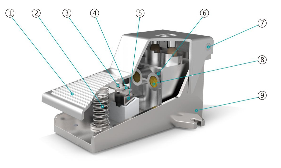 | 1 | Pedal | 4 | Haken | 7 | Gewinde |