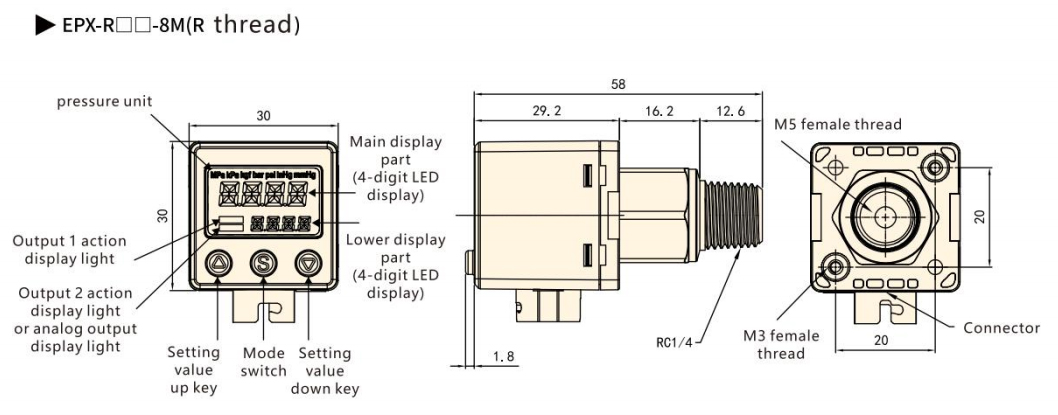 | Anschlussterminalanschluss | M5 Weiblicher Thread R (Pt) 1/4 männlicher Thread | ||