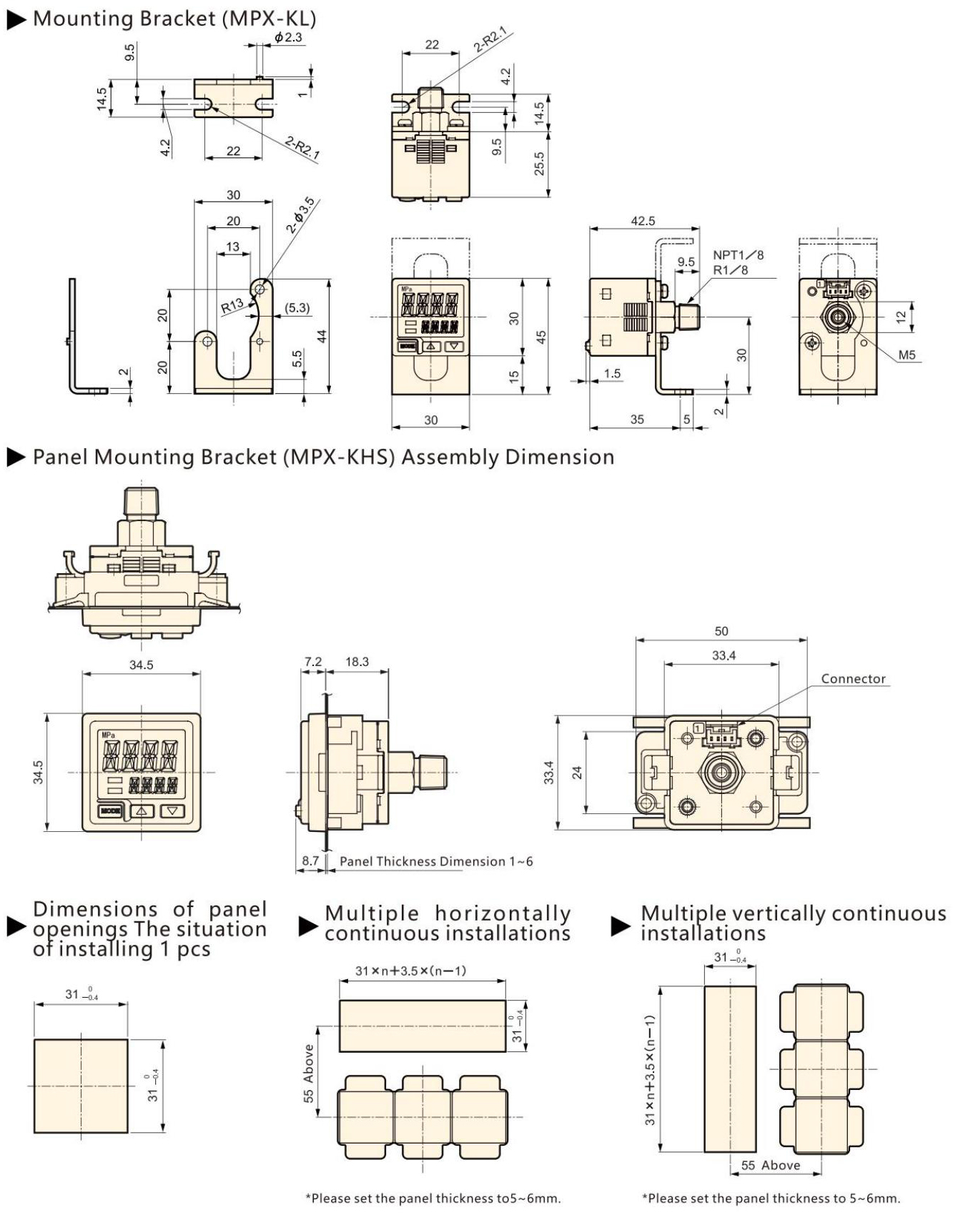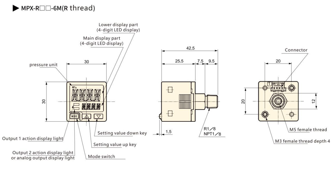 | Anschlussterminalanschluss | M5 Innengewinde + R (PT) 1/8 Außengewinde | ||