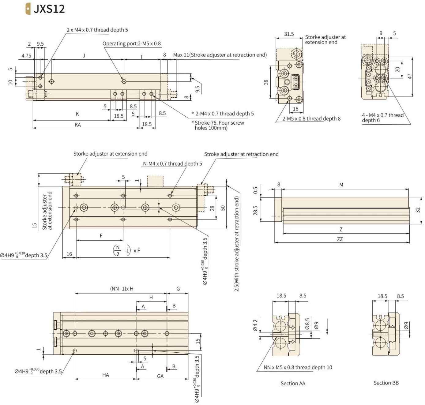 | JXS20-75 | 60 | 60 | 6 | 19 | 35 | 4 | 54 | 70 | 10 | 108 | 96 | - | 2 | 147 | 145.5 | 161 |