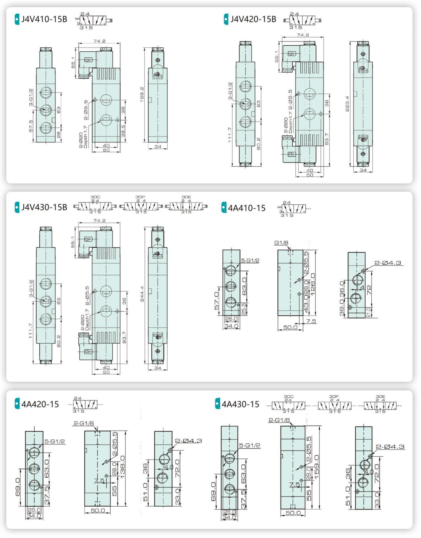 | Ventiltyp | 5/2 Weg | 5/3 Weg | ||||||