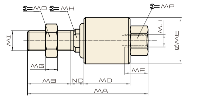 FDJT Kolbenstange schwimmend Jiont Gesamtdimension