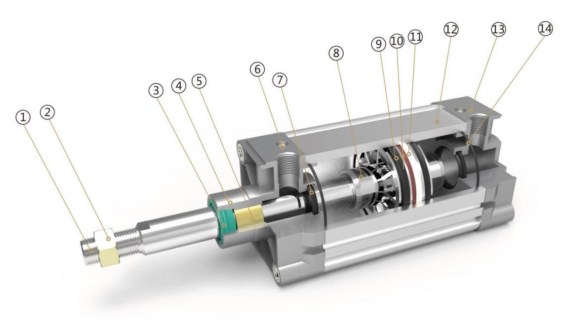 2. Die Kolbendichtung verwendet zwei NBR-PA-Material als Einweg-Versiegelungsstruktur vom Typ y mit Kompensationsfunktion, langer Lebensdauer und niedrigem Startdruck.