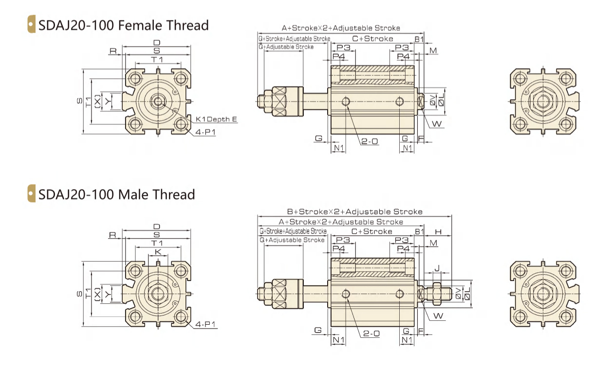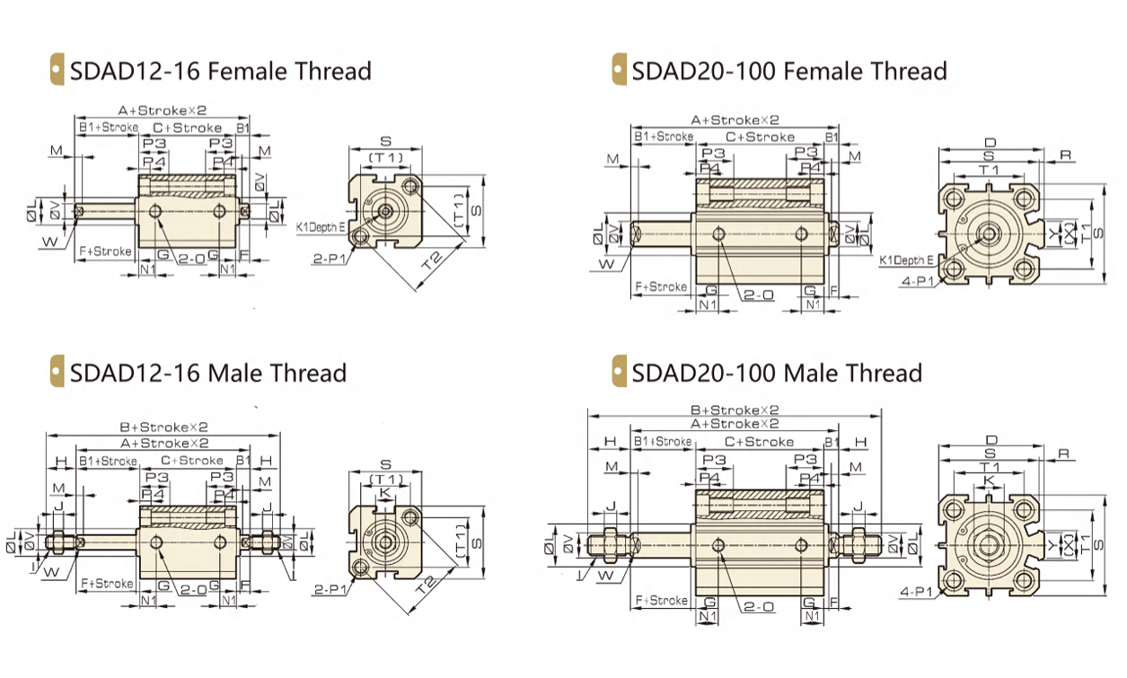 | Betriebsdruckbereich | Doppeltwirkend | 0,1 ~ 1,0 mPa | |||||||||
